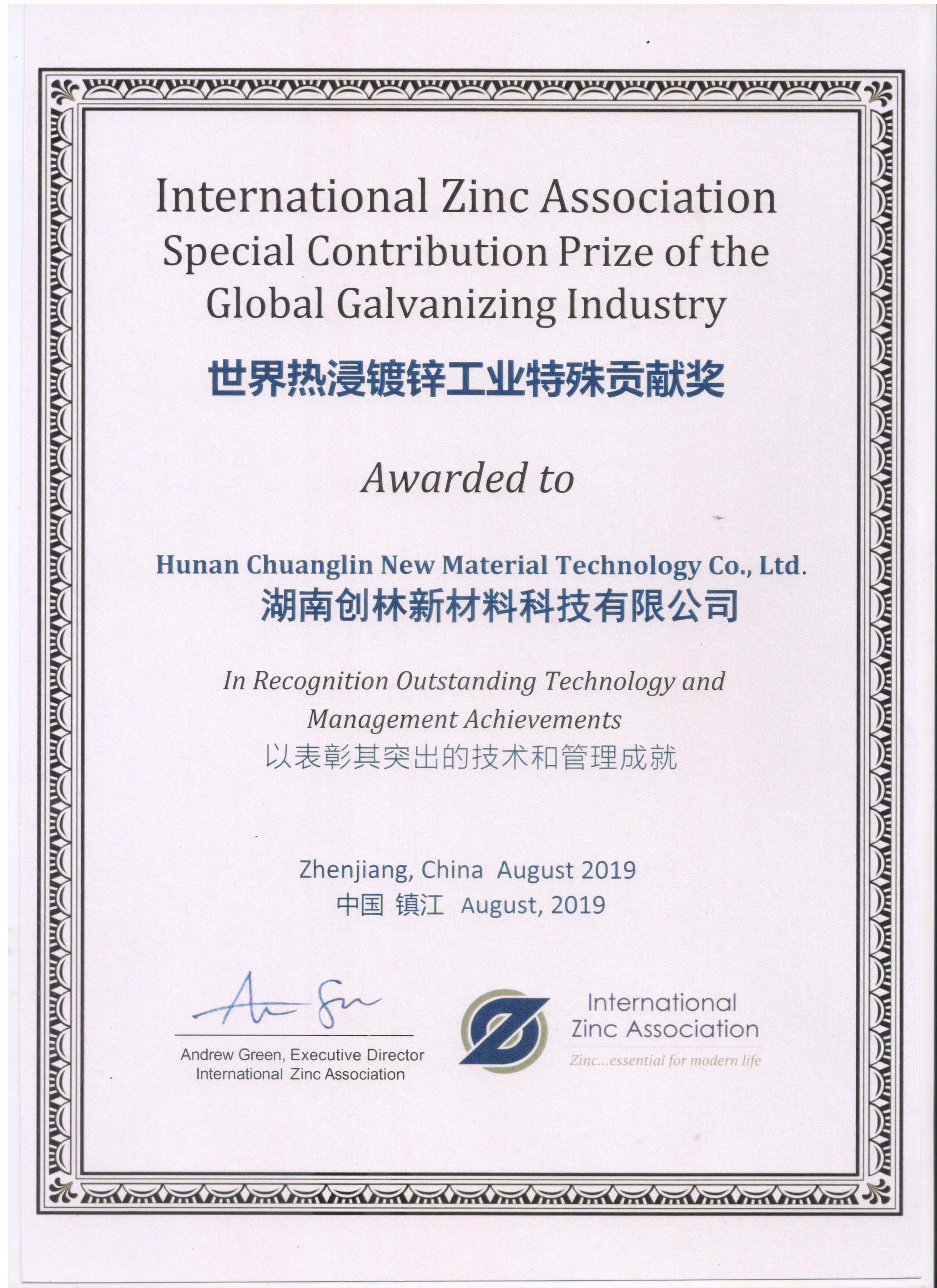 2019年度世界熱浸鍍鋅特殊貢獻(xiàn)獎