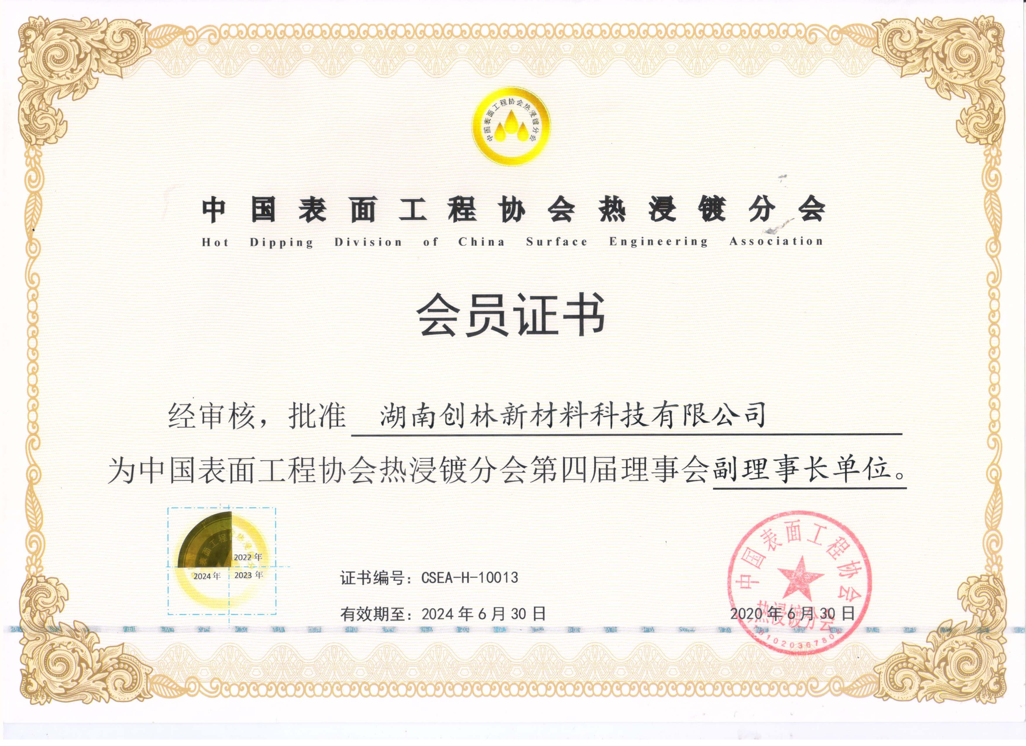 Hot Dip Division of China Surface Engineering Association Vice chairman unit